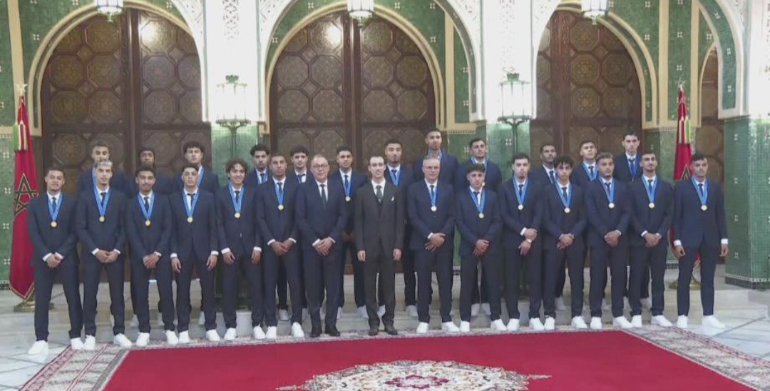 بتعليمات سامية من جلالة الملك، صاحب السمو الملكي ولي العهد الأمير مولاي الحسن يترأس حفلا أقامه جلالته على شرف أعضاء المنتخب الوطني لكرة القدم لأقل من 20 سنة، بطل العالم