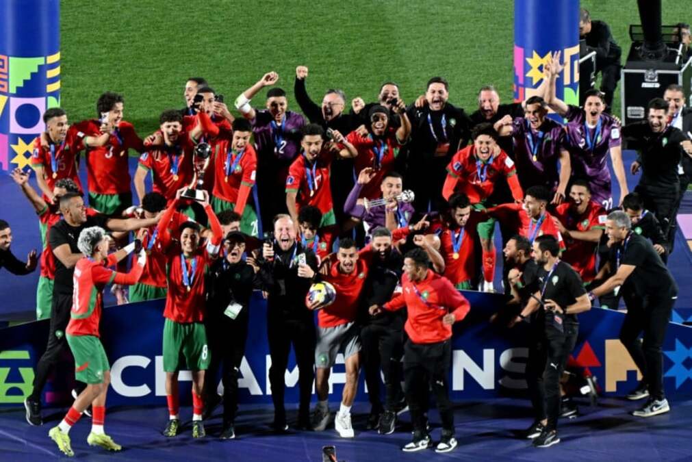 وأبرز المصدر ذاته إنجازات المنتخب المغربي لكرة القدم داخل القاعة، حيث فاز المنتخب الوطني للسيدات بكأس الأمم الافريقية 2025، بينما فاز منتخب الذكور باللقب القاري للمرة الثالثة على التوالي في 2024، إضافة إلى كأس العرب سنة 2023.